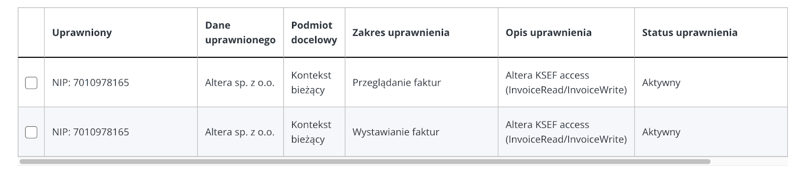 Poprawnie nadane uprawnienia dla Altera możesz samodzielnie sprawdzić w KSeF.